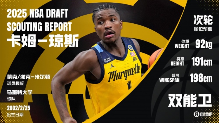 次轮即战力!卡姆-琼斯:23岁马奎特技术流双能卫 运动能力成短板