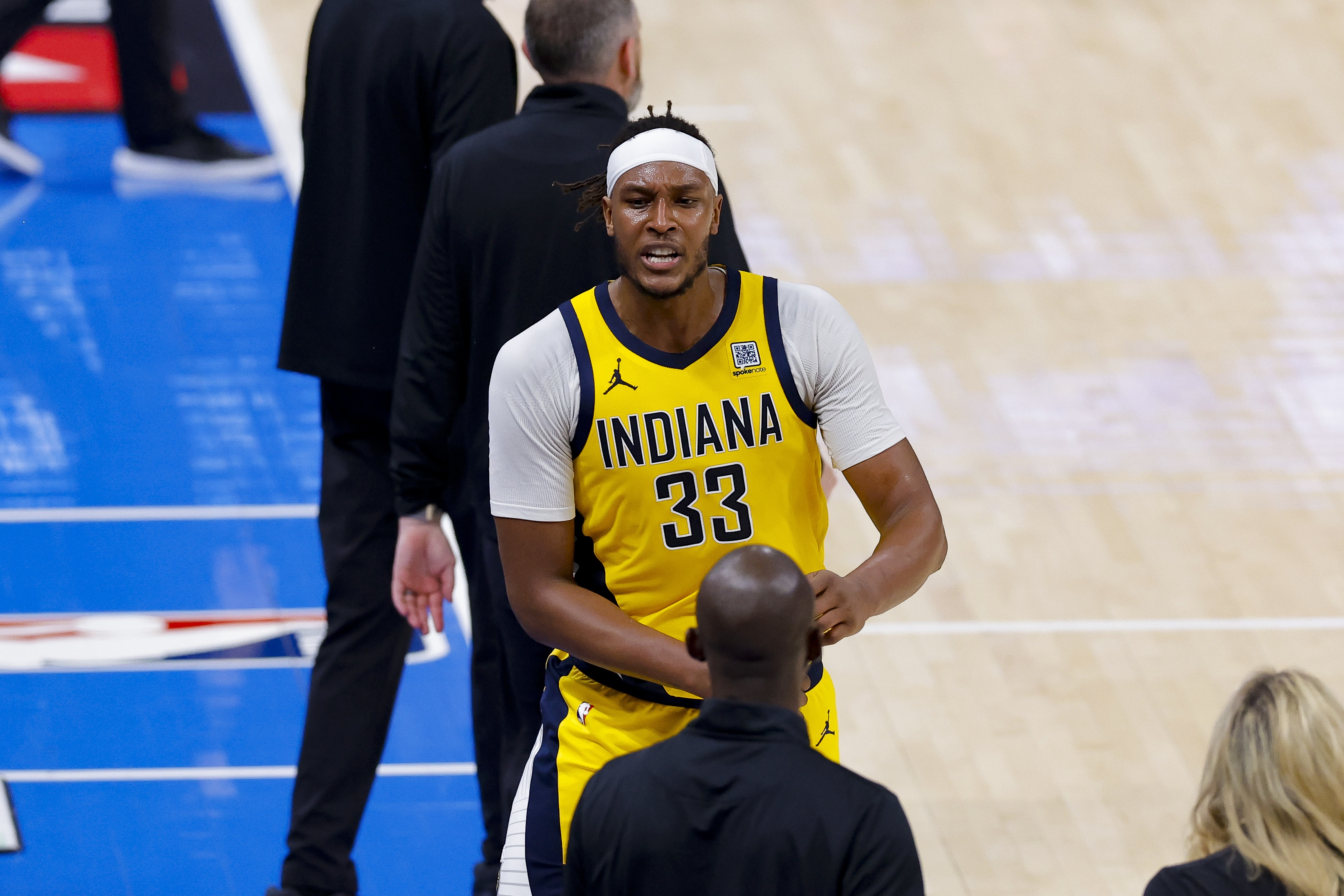 6月23日讯 总决赛G7步行者91-103不敌雷霆,无缘总冠军。赛后,步行者球员西亚卡姆接受媒体采访。记者:哈利伯顿伤退...