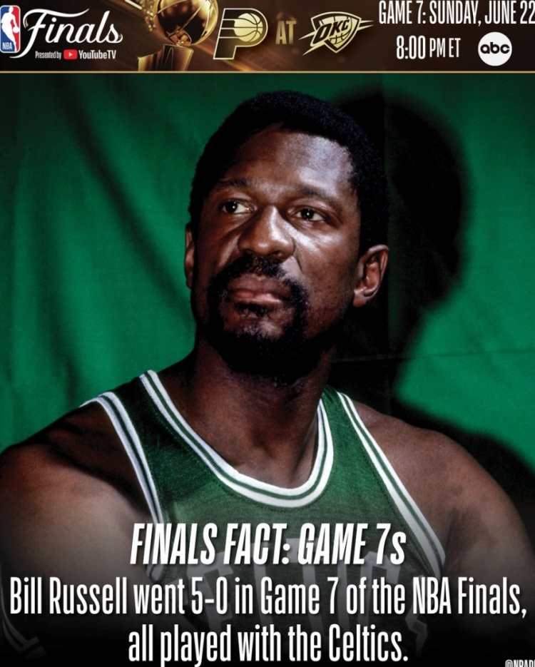 6月23日讯 今天上午8点,雷霆和步行者的总决赛抢七大战将正式开打。据统计,NBA名宿比尔-拉塞尔在总决赛抢七大战中5胜...