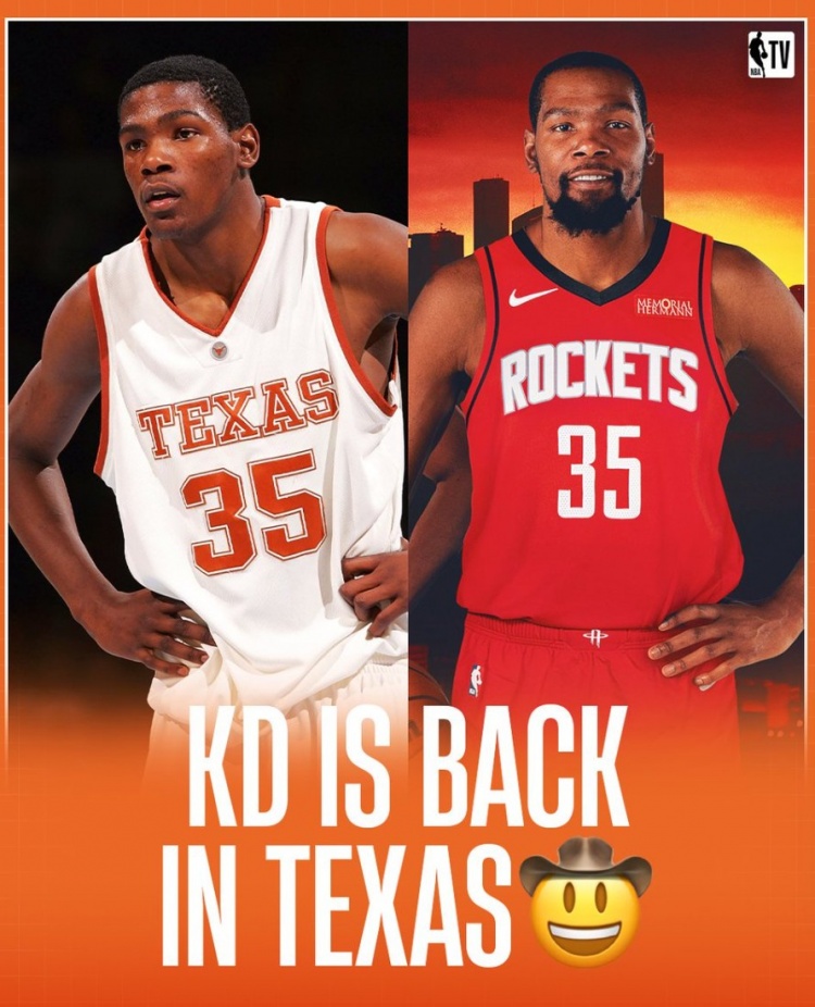 回到梦开始的地方!杜兰特曾就读德克萨斯大学 时隔18年重返得州