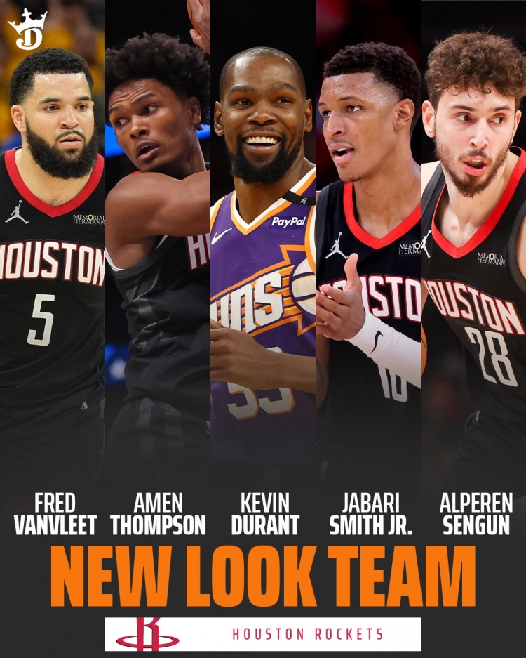 火箭新赛季潜在首发6月23日讯 据此前报道,杜兰特被交易至火箭!换杰伦-格林+狄龙+10号签+5次轮!据TA记者Sam ...