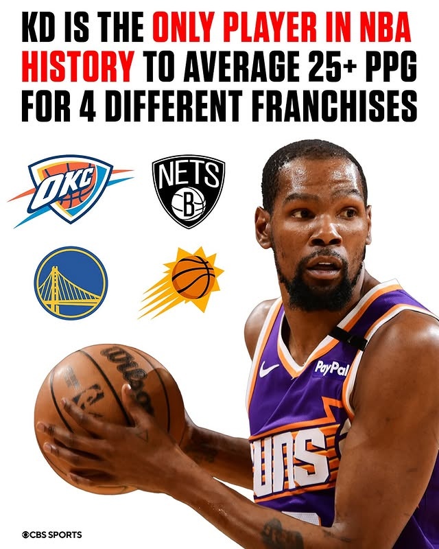 能延续吗?杜兰特在此前四支球队全部场均得分25+ 历史唯一