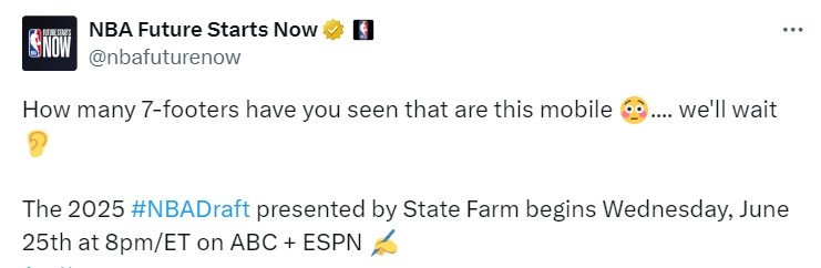 NBA官方账号晒瀚森集锦:你们见过多少如此灵活的大个 拭目以待