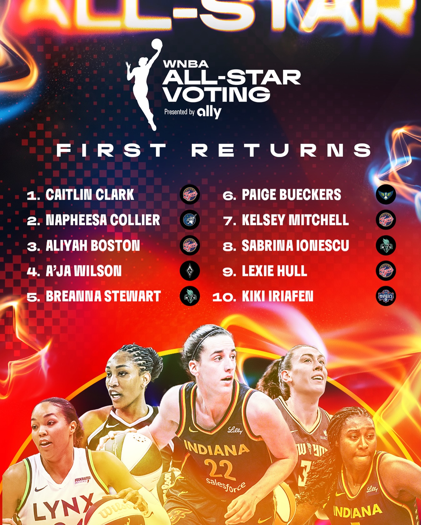 投票人数暴涨!WNBA全明星球迷票选首期结果:克拉克第1 佩奇第6