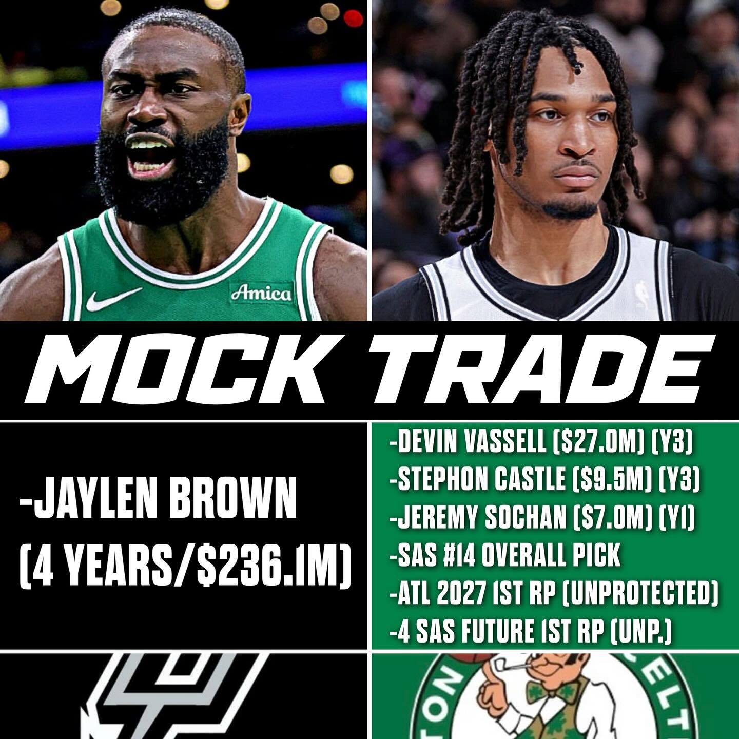 >>Shams:多支球队向绿军提出“疯狂报价” 尝试换取布朗和怀特马刺送出:瓦塞尔+卡斯尔+索汉+14号签+...