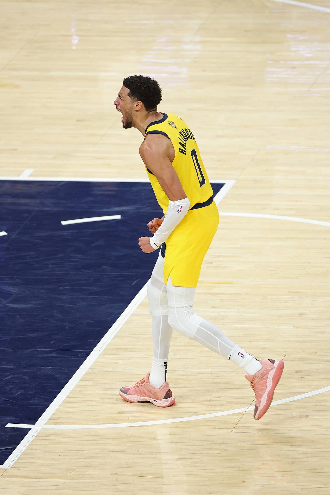 6月20日讯 NBA总决赛G6,步行者108-91击败雷霆,大比分3-3扳平拖入抢七。赛后,哈利伯顿接受了记者采访。谈到...