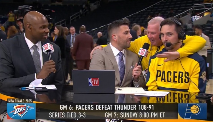 6月20日讯 NBA总决赛G6,步行者108-91战胜雷霆,总比分扳成3-3,总决赛将进入抢七大战决定冠军归属。赛后,N...