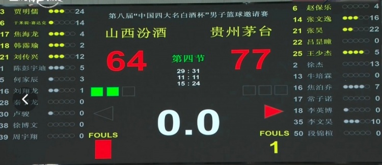 视频来源:抖音@篮球摄手虎9月24日讯 中国四大名白酒杯邀请赛,贵州茅台77-64战胜山西汾酒。此役,代表贵州茅台出战的...