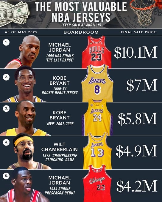 5月球衣拍卖价格排行榜 乔丹&科比&张伯伦领衔前五