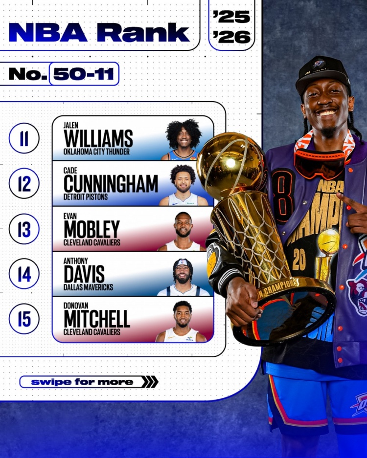 ESPN百大球员50-11:恩比德47 申京25 哈登23 巴特勒18 杰伦威11