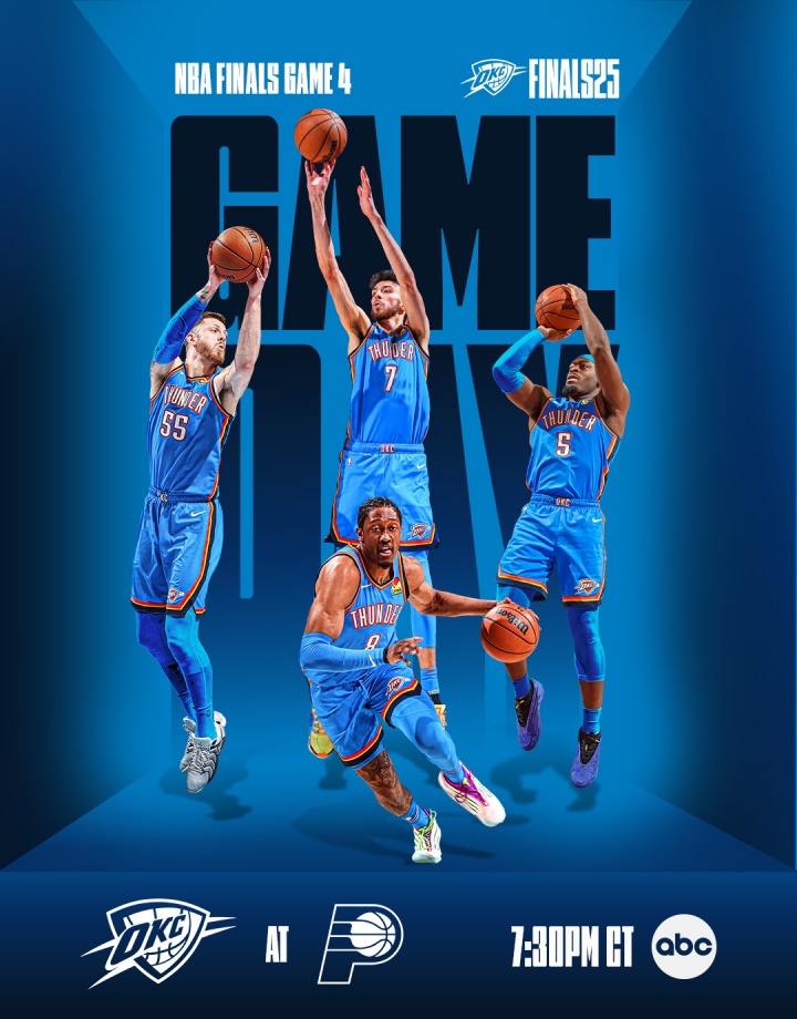 06月17日讯 今日NBA总决赛步行者(2)VS雷霆(2)G5,将于今早8:30打响。赛前,两队公布了首发阵容:雷霆:亚...