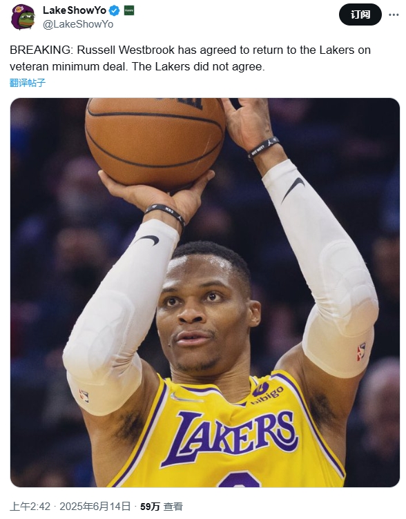 😭湖媒嘲讽:威少同意底薪重回湖人 但湖人没同意