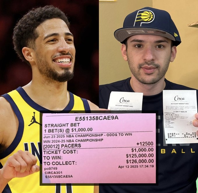 1赔125💰职业赌徒4月初买了1000刀步行者总冠军 能赚12万5!