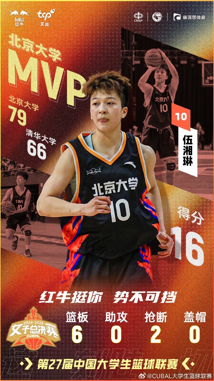成功卫冕女子组冠军!CUBAL今日最佳球员:北京大学伍湘琳