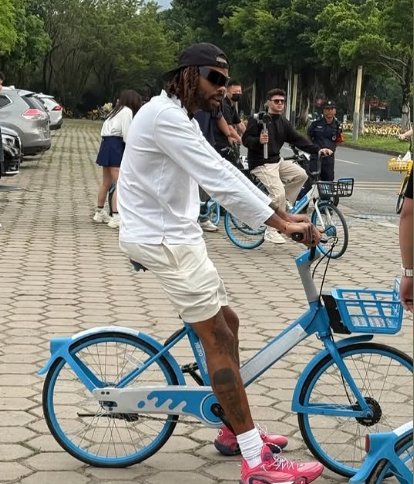 05月28日讯 今日,NBA球员德安吉洛-拉塞尔更新了社交媒体,分享中国行期间在街头骑共享单车的照片。...