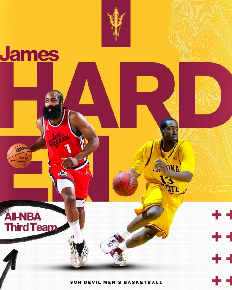 5月30日讯 据此前报道,2024-25赛季NBA最佳阵容出炉,快船球星哈登入选最佳阵容三阵。今日哈登的母校亚利桑那州立...