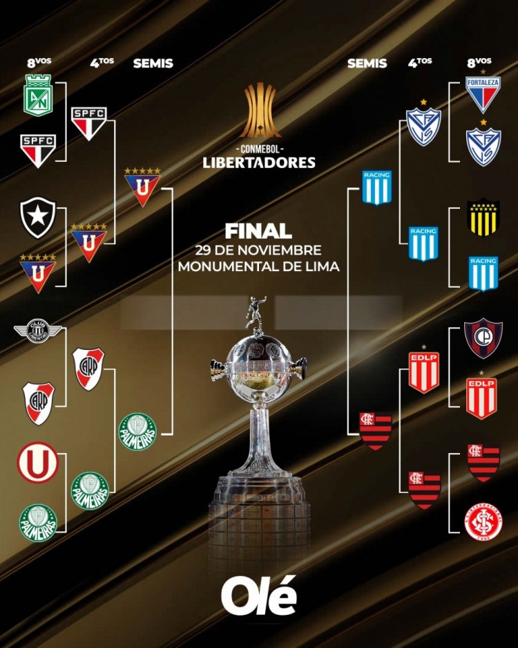 解放者杯半决赛对阵:基多体育大学vs帕尔梅拉斯,竞技vs弗拉门戈