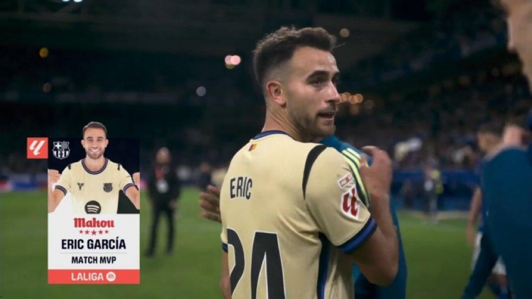 打进扳平进球,埃里克-加西亚当选巴萨3-1客胜奥维耶多全场最佳