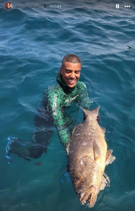 自由身待业中!36岁前国脚阿兰晒出捕获巨型石斑鱼的照片