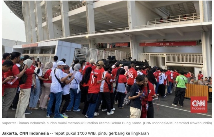 6月5日讯 据印尼CNN报道,当地时间17点(北京时间18点),今晚印尼主场对阵中国的雅加达格罗拉蓬卡诺体育场已经开始让...
