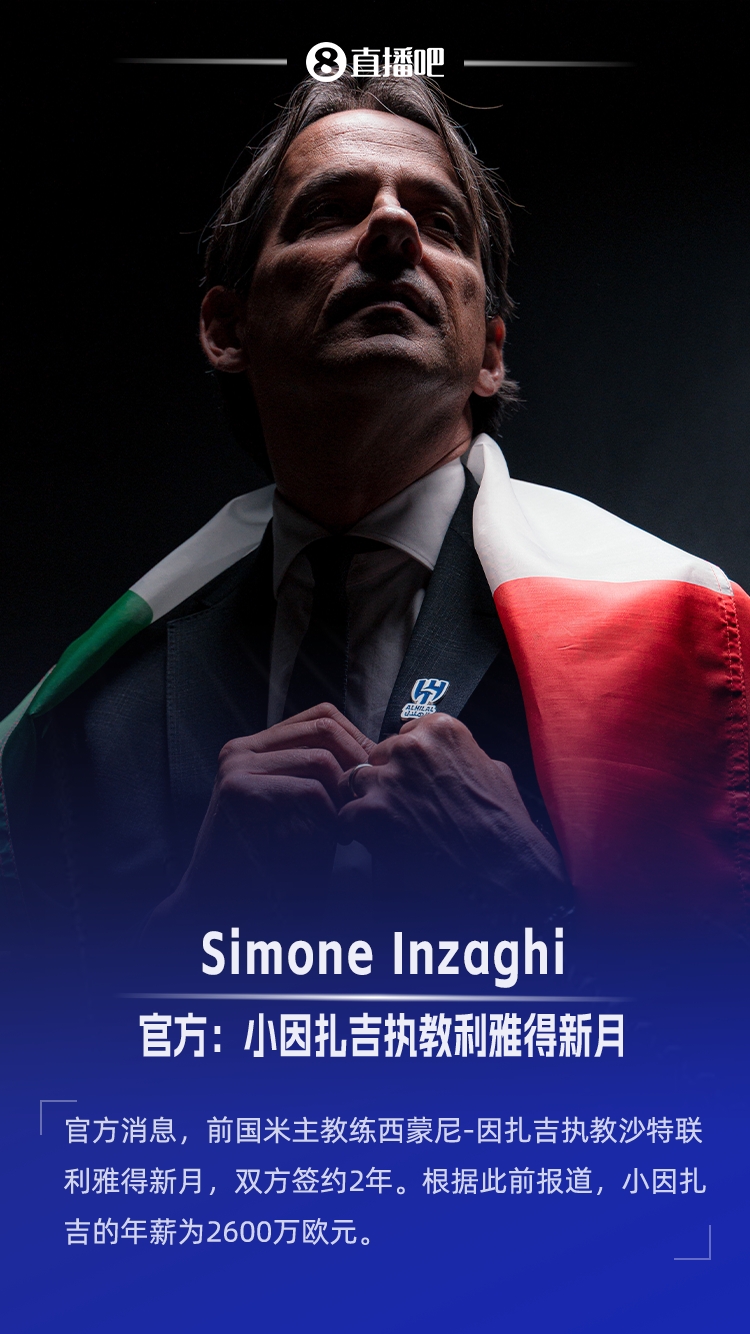 年薪2600万欧!官方:小因扎吉出任利雅得新月主帅