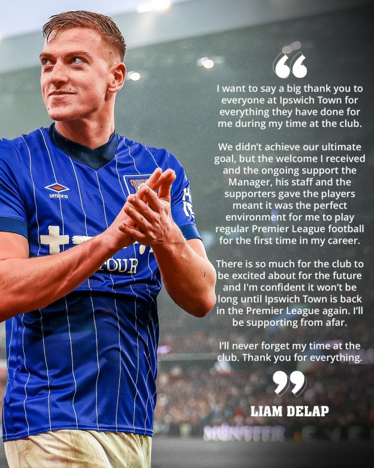 6月5日讯 切尔西官方宣布签下伊普斯维奇前锋德拉普,伊普斯维奇社媒晒出德拉普的告别信。德拉普在信中写道:“我要向伊普斯维...