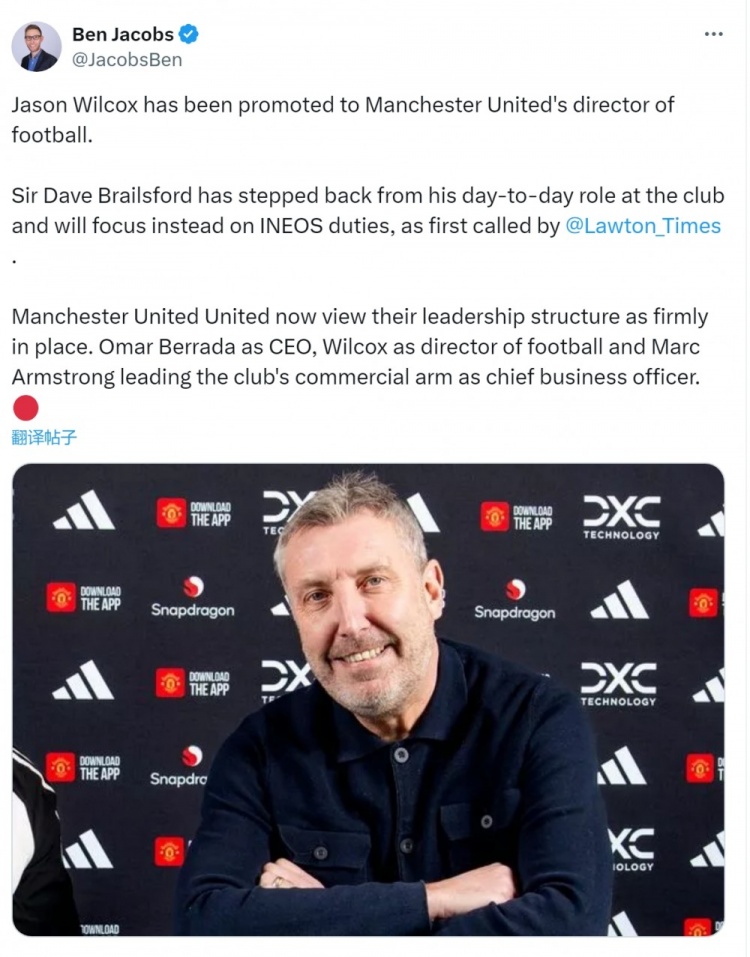 6月5日讯 据记者雅各布斯报道,威尔科克斯已升任曼联足球总监。雅各布斯指出,布雷斯福德已经退出曼联俱乐部的日常工作,专注...