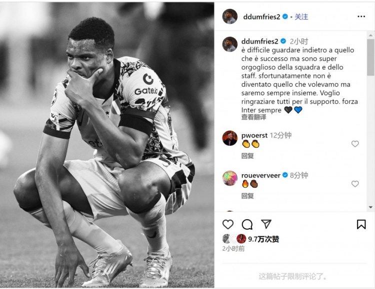 6月4日讯 国米边卫邓弗里斯社媒发文,谈到了欧冠决赛失利的话题。邓弗里斯写道:“回顾过去发生的一切很困难,但我为球队和工...