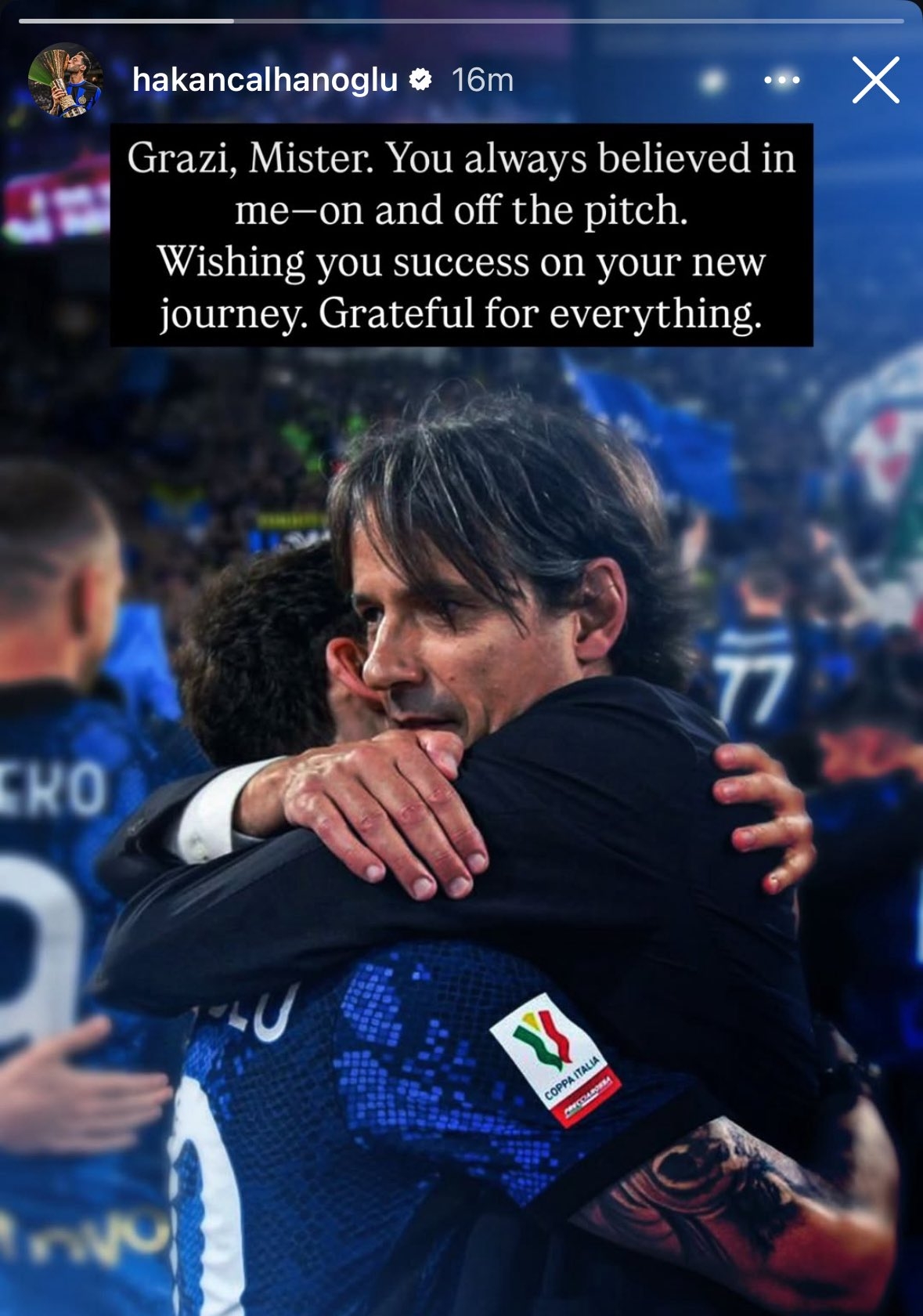 6月4日讯 国米官方宣布主帅小因扎吉离队。国米中场恰尔汗奥卢通过社交媒体表达了对主帅深深的感谢。恰尔汗奥卢社媒写道:谢谢...