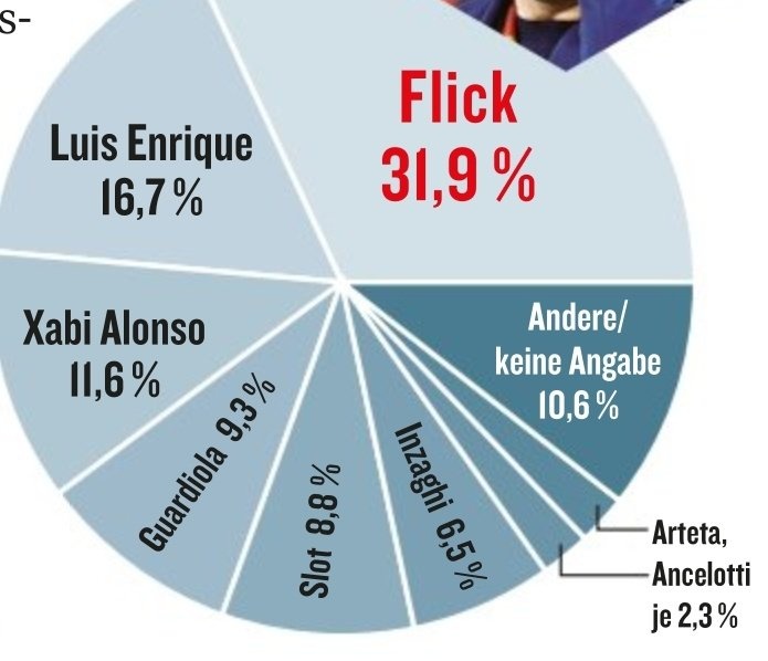 德甲球员选世界最佳教练,弗里克、恩里克、阿隆索分列前三