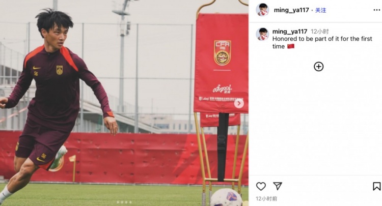 杨明洋社媒晒国足训练照:非常荣幸能成为其中一员
