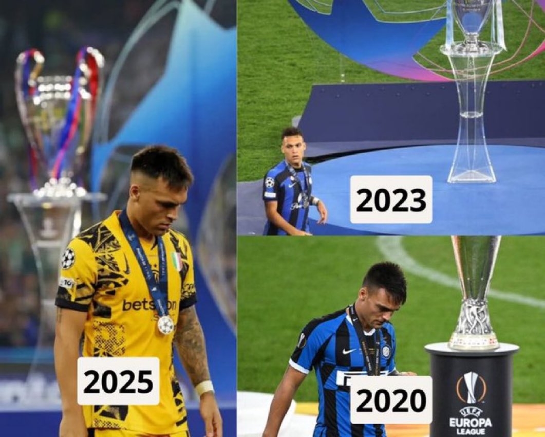 梦魇😵劳塔罗生涯三进欧战决赛全部无缘冠军 欧冠2亚+欧联1亚