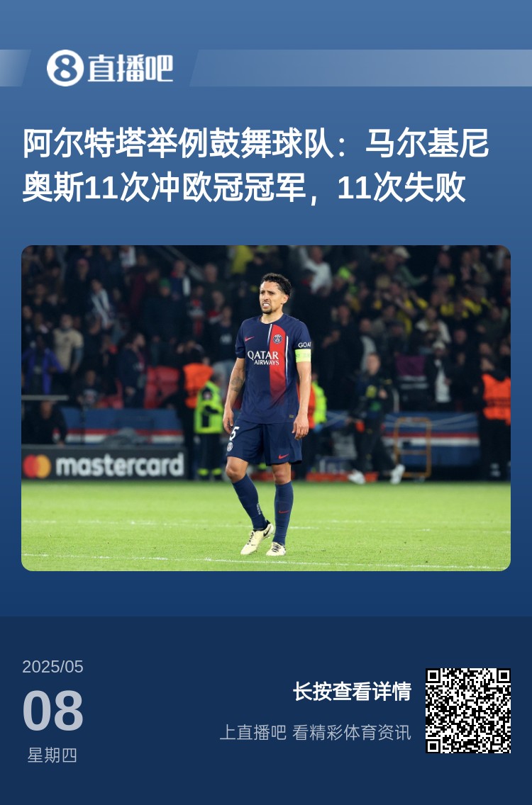 下赛季加油!阿尔特塔曾举例马尔基尼奥斯:11次冲击欧冠11次失败