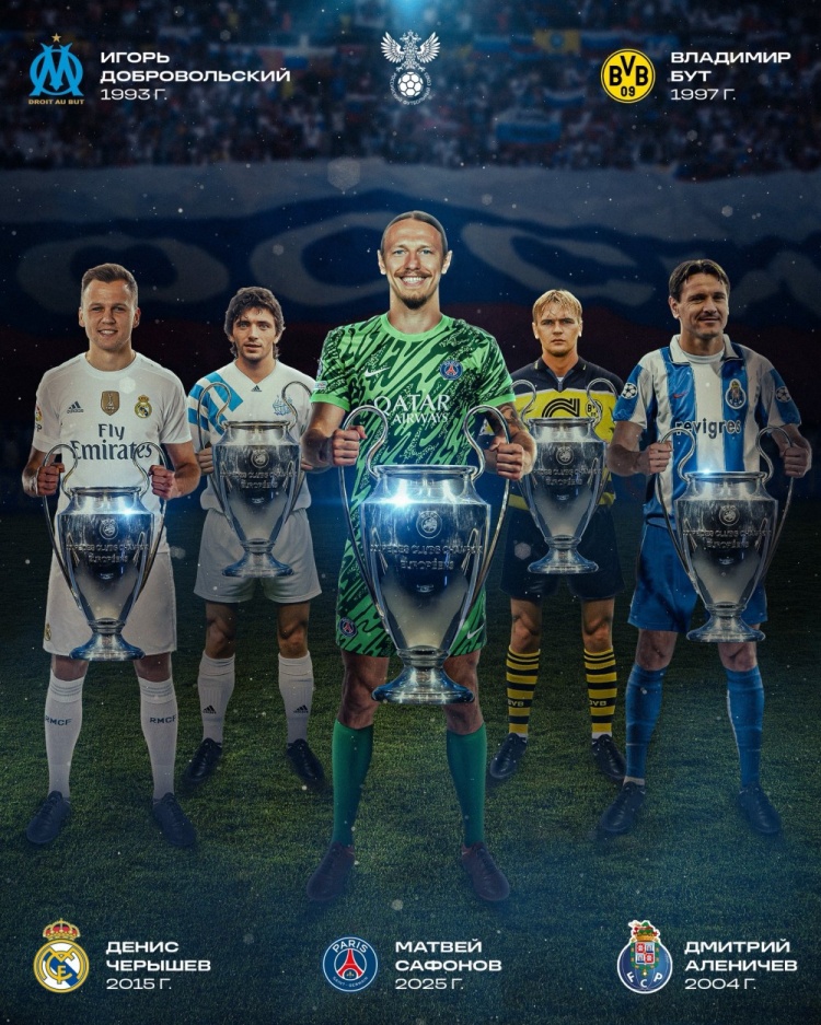 俄罗斯队官方祝贺萨福诺夫夺冠,成为第五位问鼎欧冠俄罗斯球员