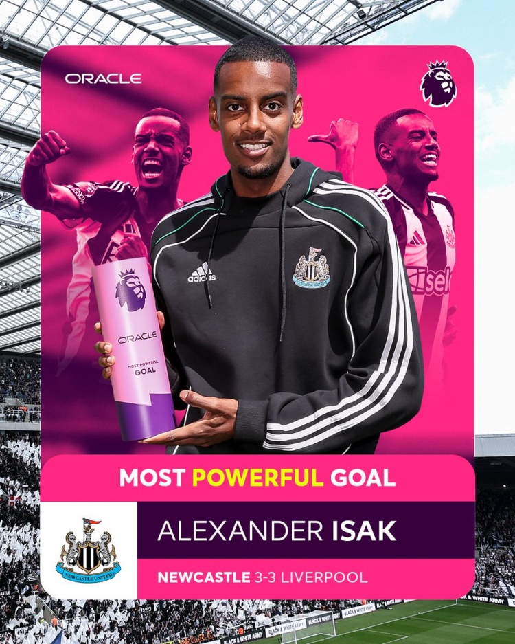 敲山震虎!伊萨克在纽卡3-3红军的远射当选赛季英超最具力量进球
