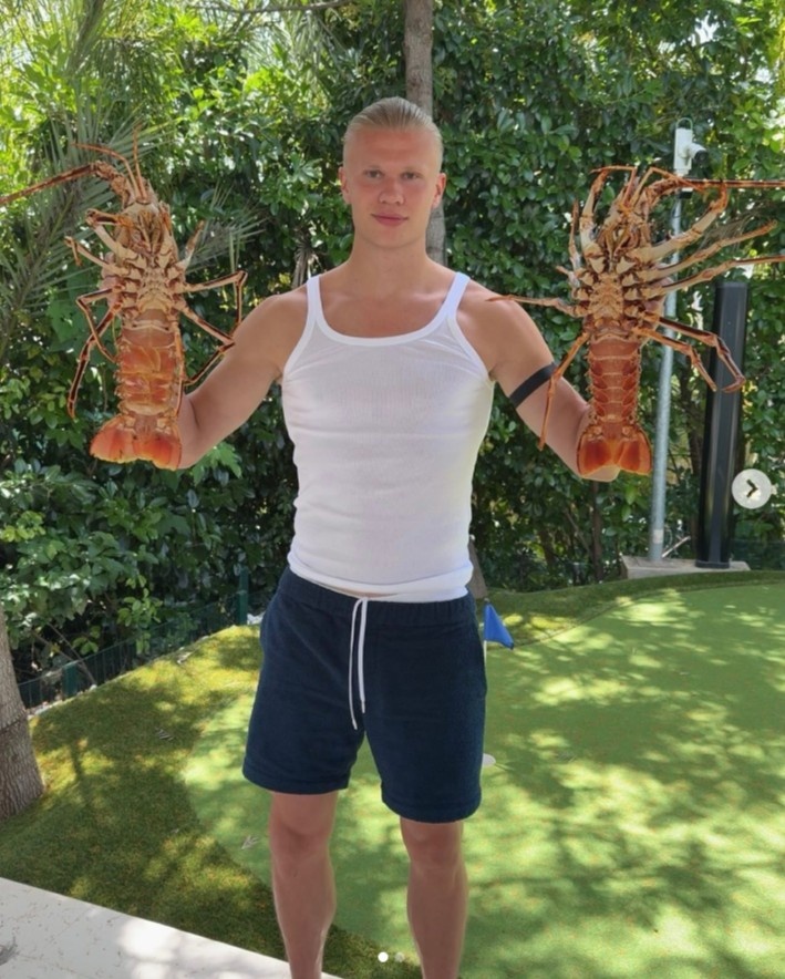 想过怎么吃没🦞🦞哈兰德社媒晒照,一手拿一只龙虾