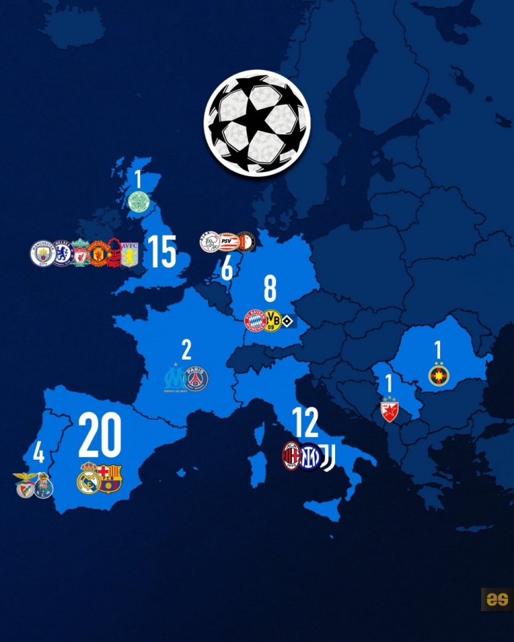 欧洲各国欧冠冠军数量更新