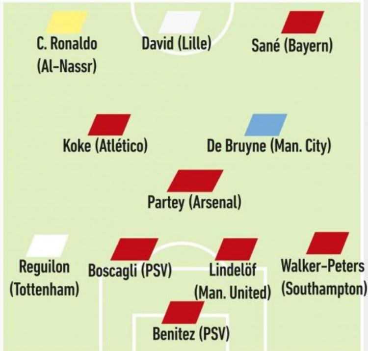 队报列合同到期阵容:C罗领衔,萨内、德布劳内、戴维在列