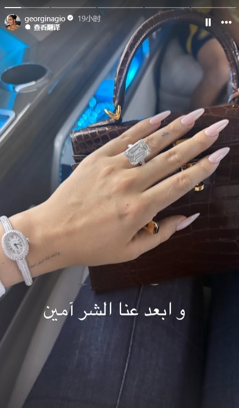 昨日乔治娜在自己的社媒晒出了自己的新钻戒,并配文“愿灾祸远离我们,阿门”...