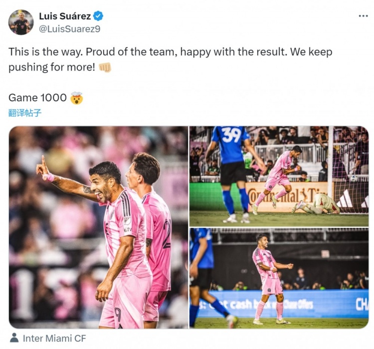 近5轮首胜!苏亚雷斯社媒:为球队感到骄傲,第1000场比赛🤯