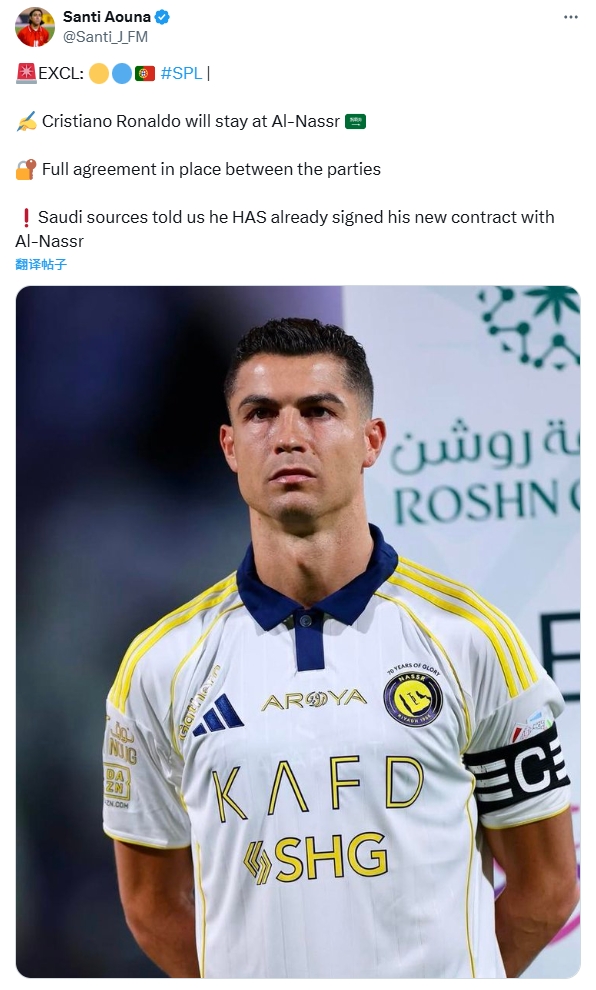 瑞天空记者:C罗将在接下来的几天里,与利雅得胜利签下2年新约