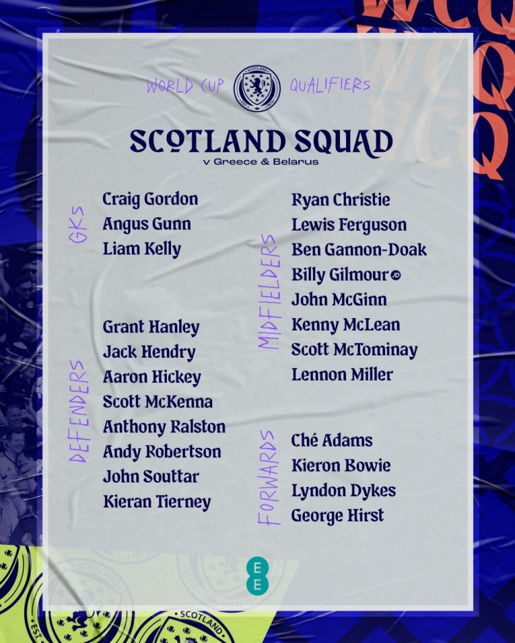 苏格兰新一期大名单:小麦、罗伯逊领衔,蒂尔尼、本多克入选