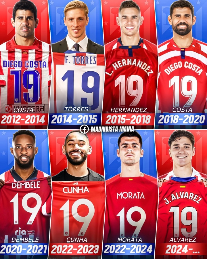 出神锋!马竞近年19号:科斯塔、托雷斯、库尼亚、莫拉塔、小蜘蛛