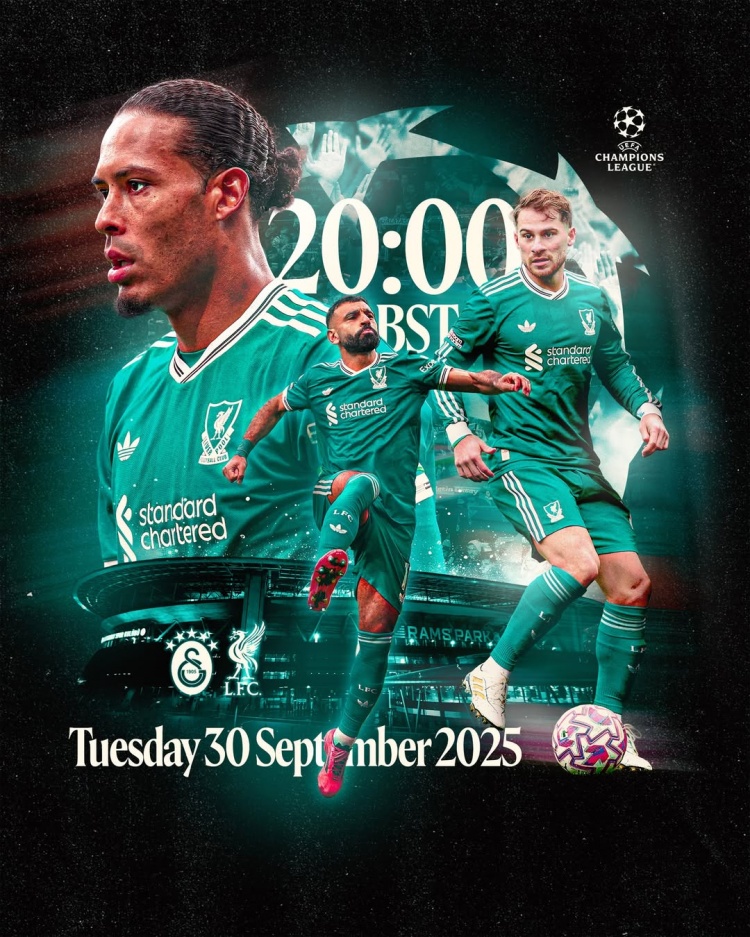 利物浦发布欧冠海报:萨拉赫、范迪克、麦卡利斯特出镜