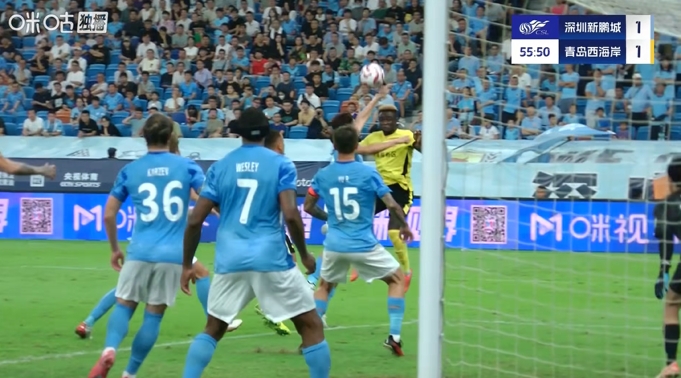 09月28日讯 中超第26轮,深圳新鹏城vs青岛西海岸,比赛第50分钟,阿齐兹头球摆渡,戴维森挑球倒钩打门中柱,险些完成...