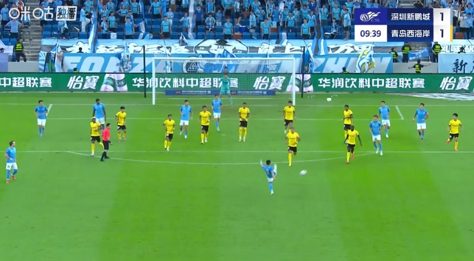 09月28日讯 中超第26轮,深圳新鹏城vs青岛西海岸,比赛第20分钟,青岛西海岸前场连续一脚出球流畅配合,马特乌斯禁区...
