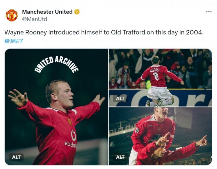 戴帽+任意球破门!曼联官方回顾21年前的今天鲁尼首秀