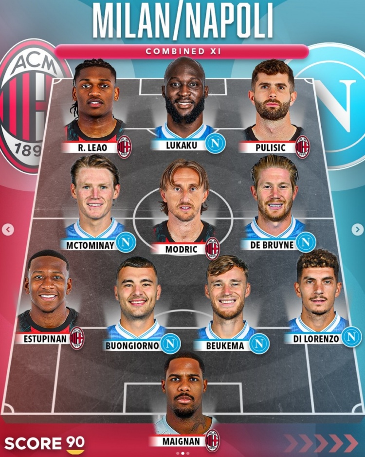 中场大师对决,那不勒斯vsAC米兰最佳阵:莫德里奇、德布劳内领衔