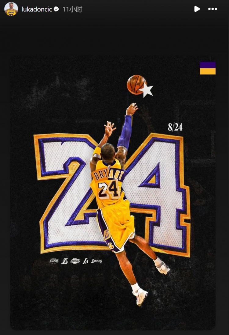 湖人球星卢卡-东契奇转发了自己和科比生涯最后的合照致敬。