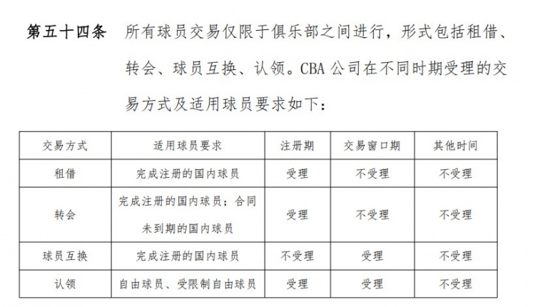 当然,8月29号只是转会操作的最后期限,CBA中的交易方式除了转会之外,还有租借、球员互换和认领。